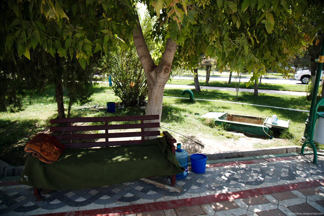 Дворники почти живут на улице. Вот своеобразный офис. Все удобства, место для отдыха в тени есть.