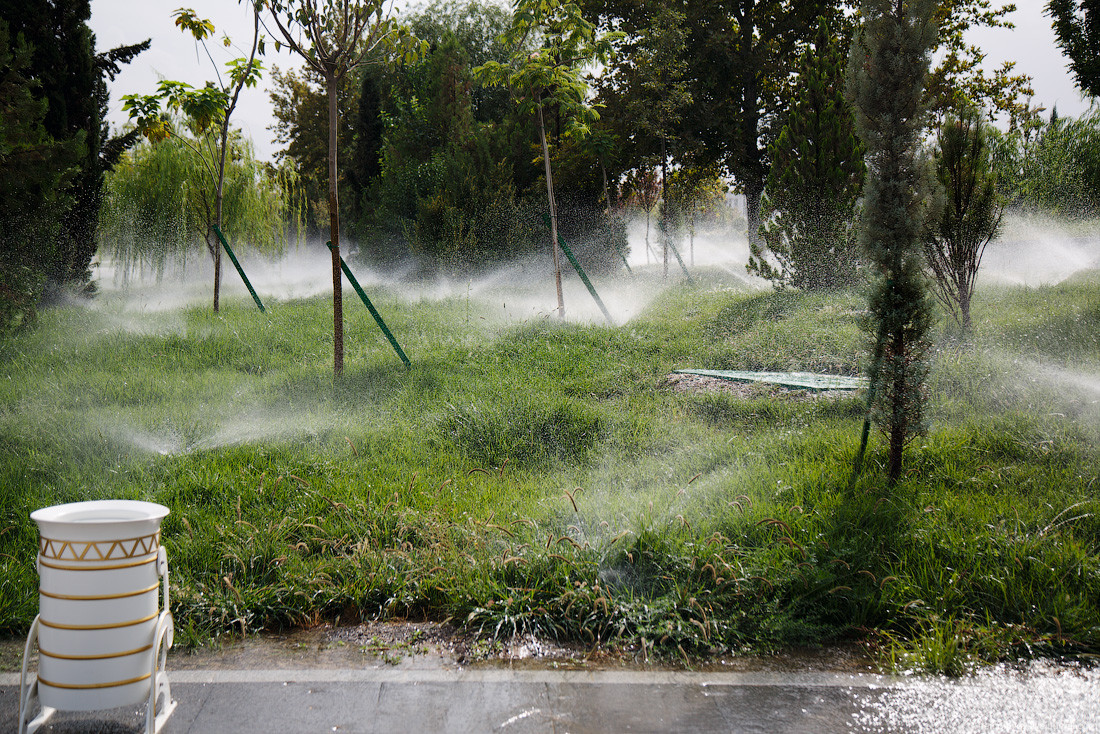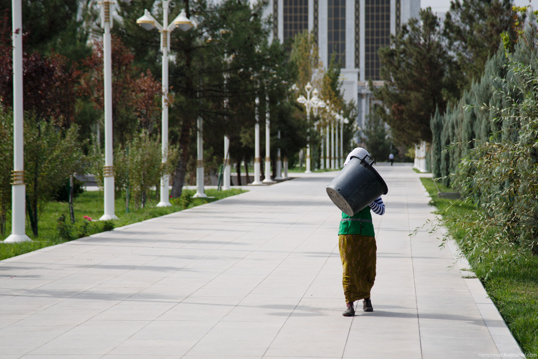 Ашхабад - как сказочная принцесса на искусственном дыхании. На поддержание его в идеальном виде тратятся огромные ресурсы. Потому что если не убрать улицы хотя бы один день, весь город покроется пылью от строек и песком окружающей город пустыни. Если траву не поливать - к вечеру она сгорит под жарким солнцем.