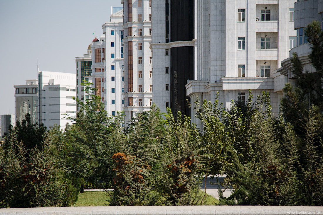 Ашхабад настолько белоснежно-мраморный, что в 2013 году по этому поводу попал в книгу рекордов Гиннеса! На тот момент насчитывалось 543 новых здания с общей площадью покрытых мрамором стен 4,5 миллиона квадратных метров! С тех пор их количество неуклонно растет.