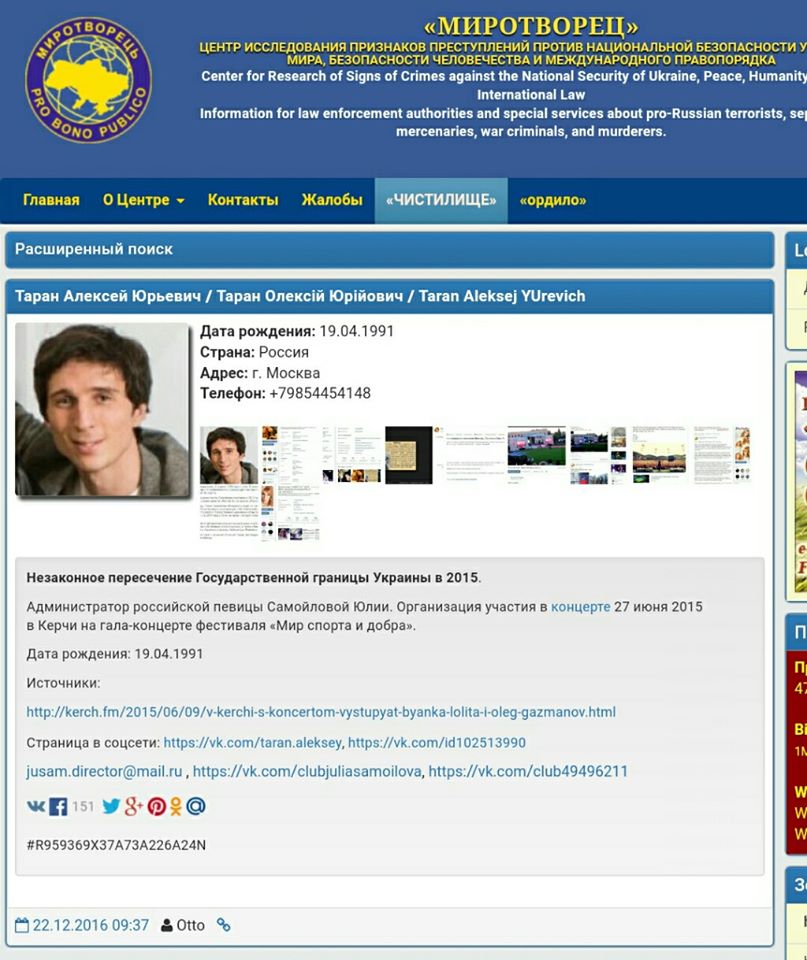 И самое важное, Самойлова есть в Чистилище Центра Миротворец: