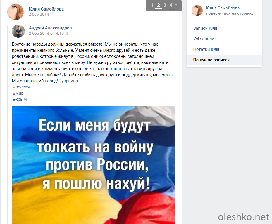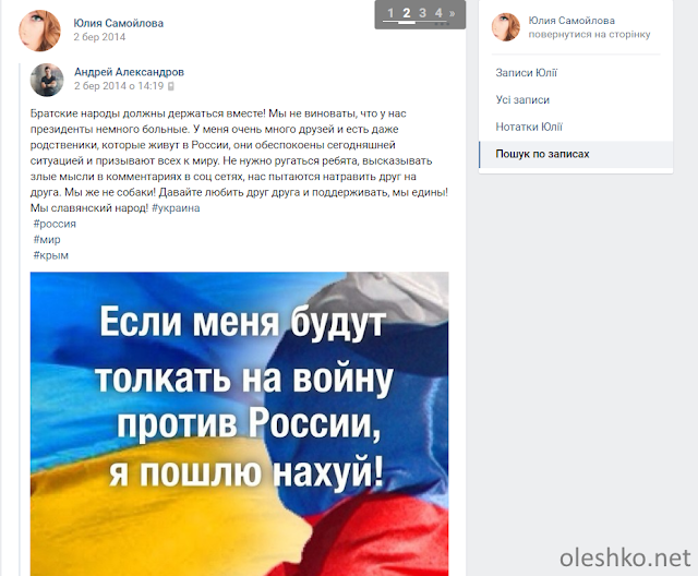 Каких то призывов остановить Путина, остановить оккупацию моей страны его армией, я у Самойловой не обнаружил.