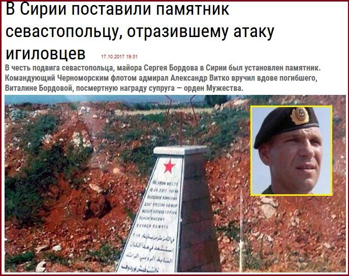 10. Предателю Украины Сергею Бордову, которого зашкварили в Сирии, орки там же поставили памятник. Внешний вид памятника соответствует “подвигу” — “отразил атаку ИГИЛ”. Шутки про “зато не стреляют” уместны?