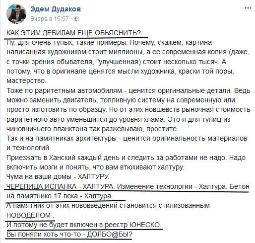 13. Понаехавшие в украинский Крым до оккупации и понаехавшие в украинский Крым после оккупации продолжают выяснять отношения, считая понаехавших нечистью, безграмотным быдлом, которое выживает местных, поучает нас жизни и держит за рабов: “Ребята, а когда мост сделают, еще больше народа приедет. Тогда точно будет худо”, “Севастополь всегда славился своим генофондом. Большинство мужского населения — моряки, военные, в целом, люди морально и физически здоровые, но это было до развала союза. Потом, конечно, все изменилось в худшую сторону. Сейчас действительно едет много нечисти, но это гастролеры”, “Дело не в названии города. Если приехать в Тьму-Таракань и начать кидаться буквами о том, какой я хороший Человек Мира и Я несу вам Свет, а вы тут "сопли жуёте", то и "тараканцы" возмутятся”, “В том-то и дело. Почему-то, если я слышу где-то разборки, скандалы в банке там или в кафе, то это в большинстве случаев наши дорогие гости поучают нас работать, так сказать. А если гости на ПМЖ приехали, то они поучают наших медиков, учителей и прочих, а то и выживают их, однако к себе почему-то требования минимальны, да и рвения особого к работе нет”, “Вам образованные люди с материка высокую культуру-мультуру везут, т.е. гонят. А Вы даже с ошибками писать не хотите. Что с Вами делать? Остаётся только добавить восклицательных !!!!!!!!!!, вопросительных ????????? и для равновесия )))))))))”, “(Понаехавшая из Сибири пишет) Как правило, приехавшие создают бизнес, рабочие места, платят налоги в бюджет Севастополя!!!”, “(Понаехавшей отвечают) Вообще, это вынужденная мера. Просто рабочие места здесь = рабство”