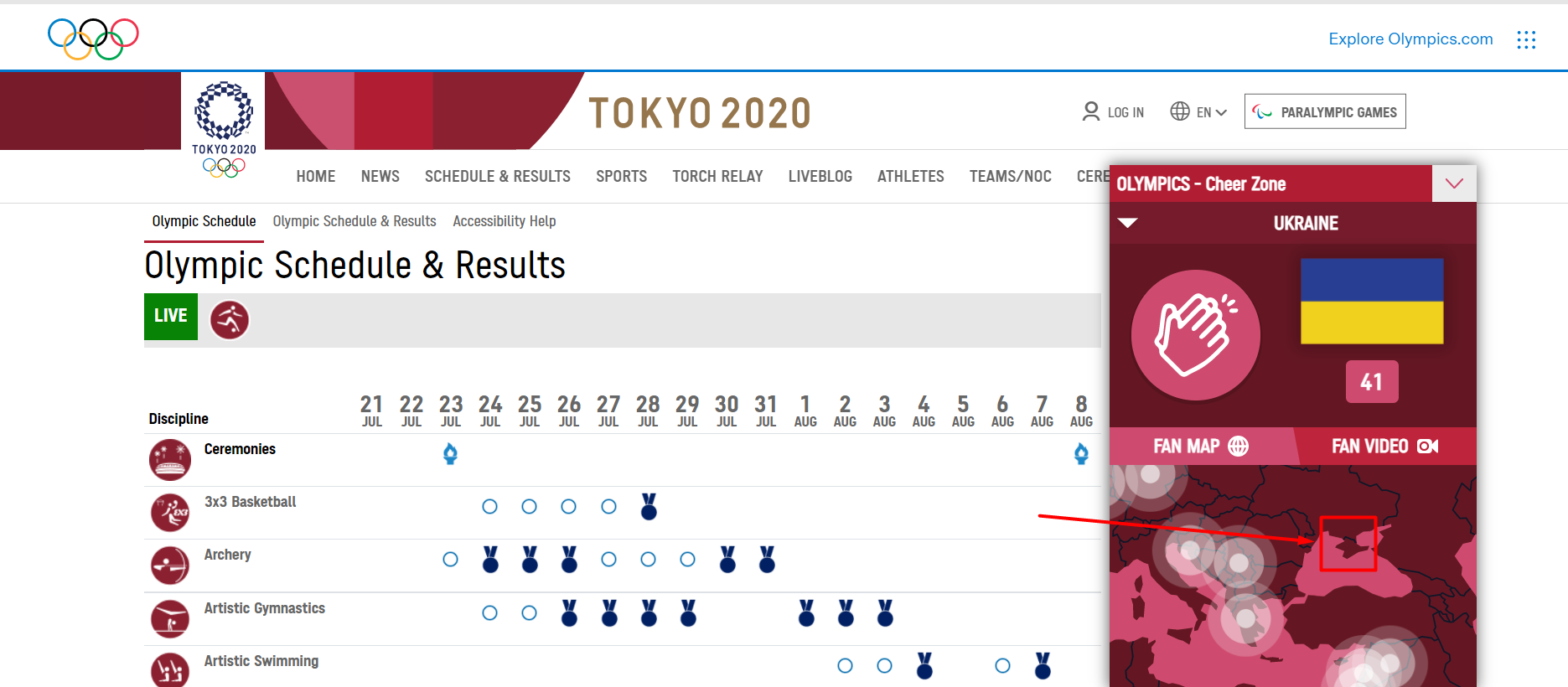 Сейчас карта с Украиной на сайте Олимпиады выглядит так: