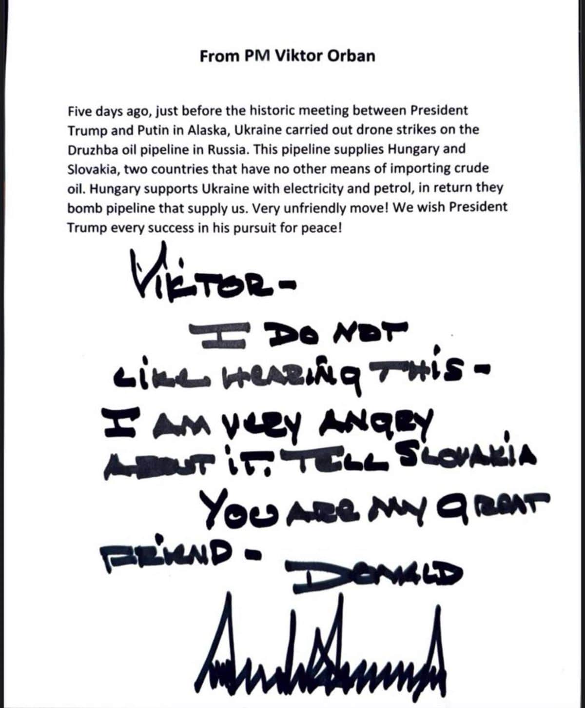 Прем'єр-міністр Угорщини Віктор Орбан вирішив написати листа президенту США Дональду Трампу у зв'язку з атакою України на нафтопровід "Дружба", яким Росія постачає нафту до Угорщини та Словаччини.