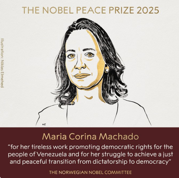 Норвезький Нобелівський комітет вирішив присудити Нобелівську премію миру 2025 року Марії Коріні Мачадо.