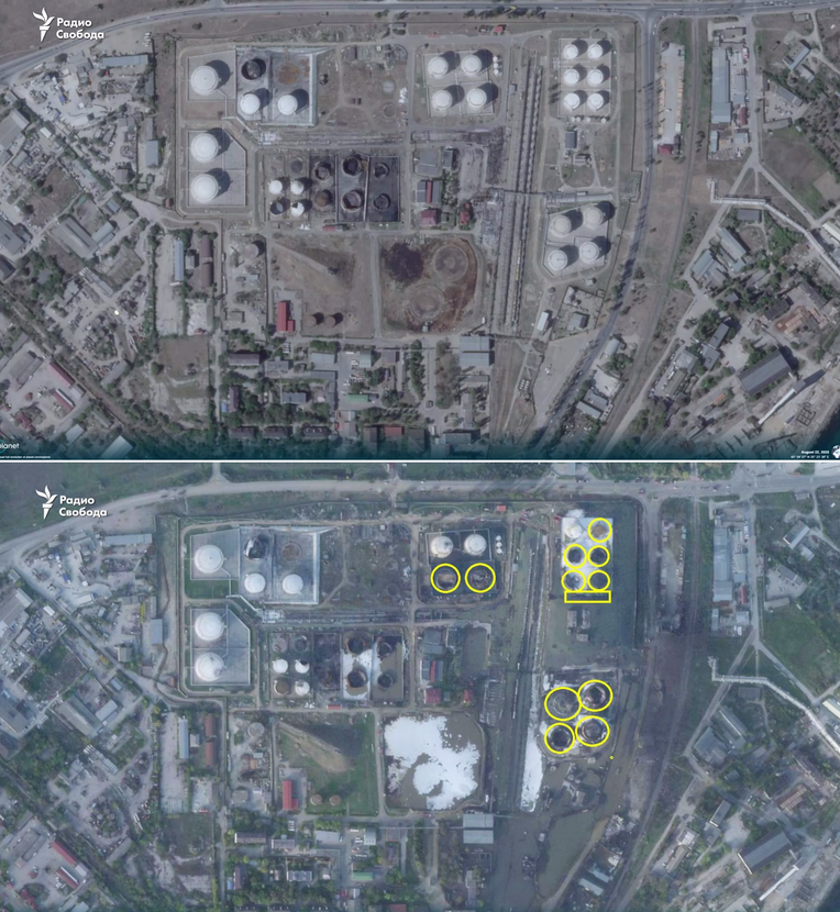 Знищено 11 резервуарів з паливом: з'явилися супутникові знімку наслідків удару по нафтотерміналу у Криму