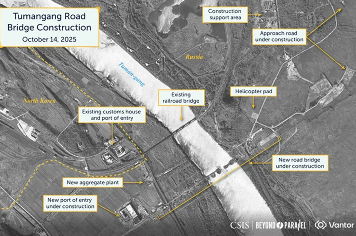 Росія і Північна Корея будують перший автомобільний міст між країнами через річку Туманна. За планом, конструкція після завершення становитиме майже 5 км вдовжки, включаючи під'їзні шляхи.