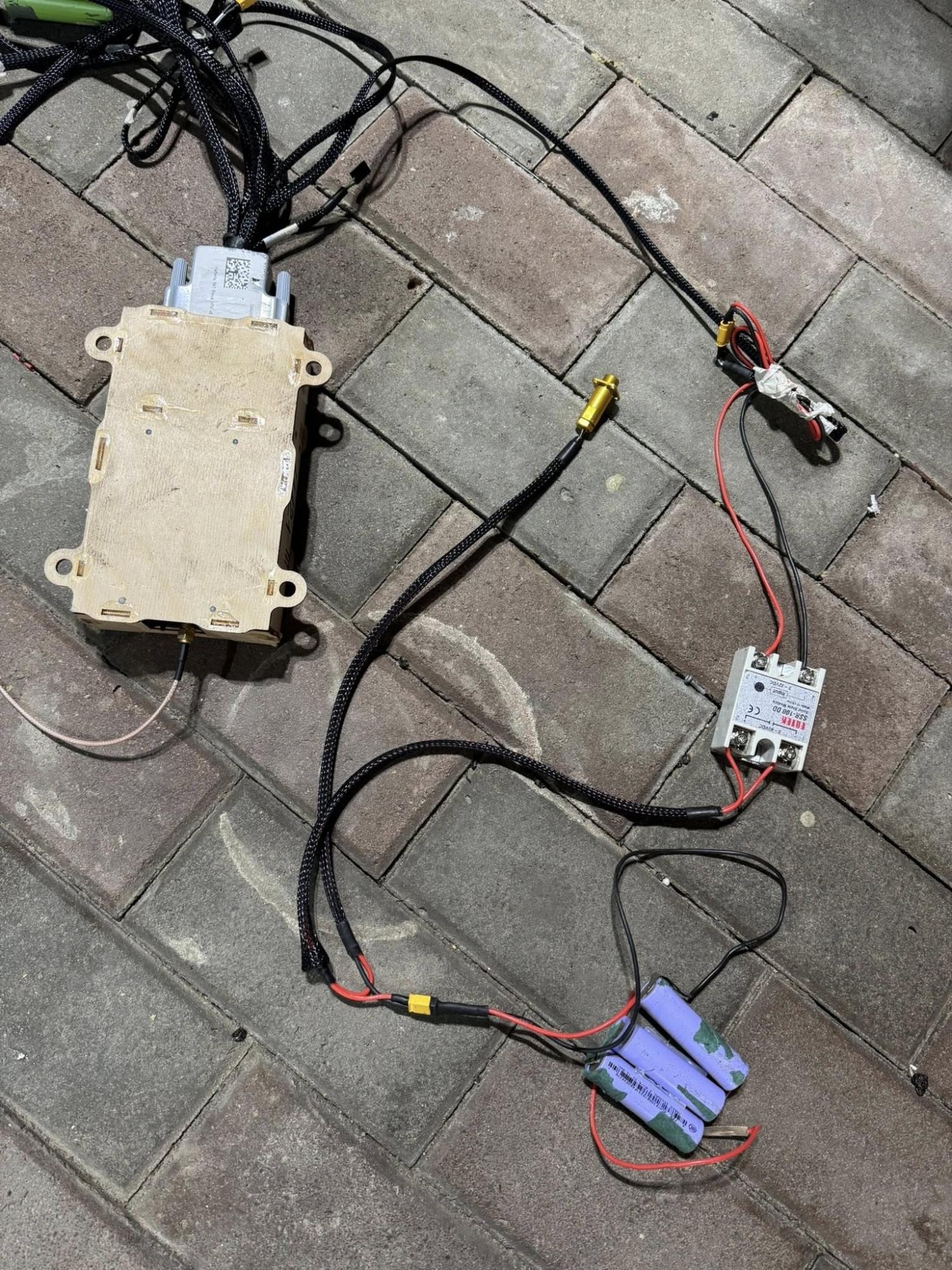 Як Ви бачите, від польотного контролера надходить сигнал на реле, яке замикається і подає напругу від трьох акумуляторів на роз'єм детонатора. Швидше за все, це відбувається за критерієм висоти.