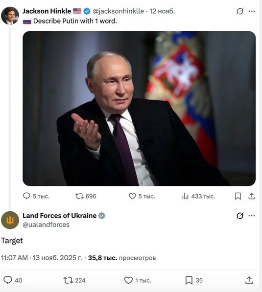 Проросійський блогер із США попросив описати Путіна одним словом: ЗСУ відповіли