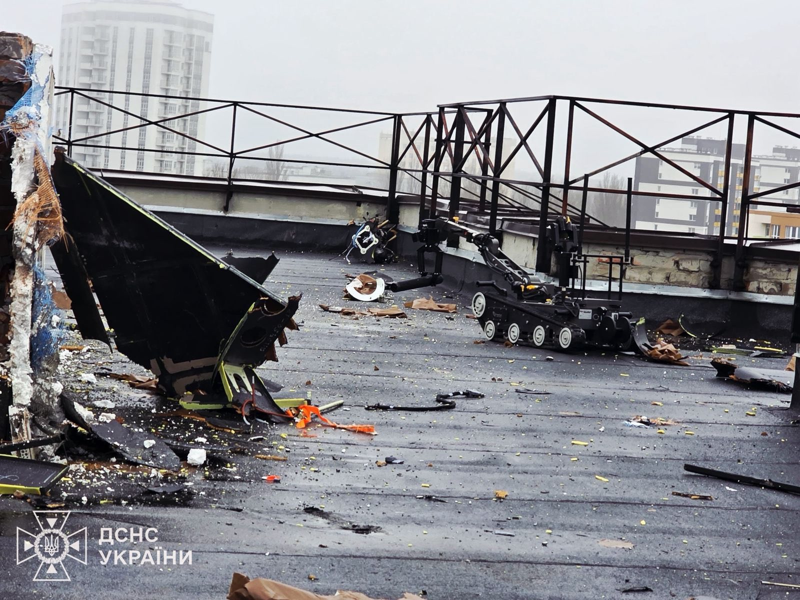 Фахівці ДСНС провели у Вишгороді унікальну операцію з розмінування дрона, який влучив у дах багатоповерхівки