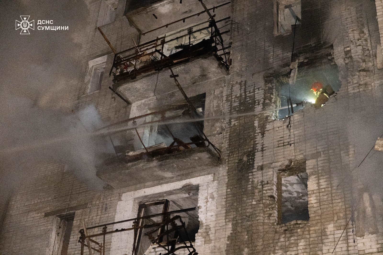 Сумщина: російські війська завдали ударів БпЛА по 9-поверхівці у місті Охтирка