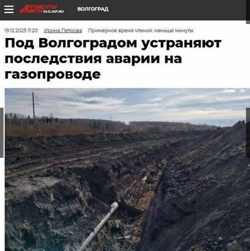 У Волгоградській області Росії 19 грудня сталося загадкове "просідання ґрунту", внаслідок якого вийшов з ладу магістральний газопровід "Центральна Азія - Центр".
