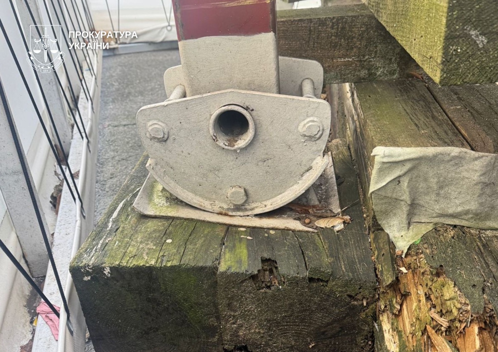 На фото та відео – стан деревних брусів, на яких тримаються металеві конструкції.