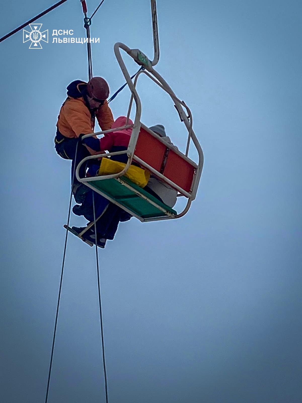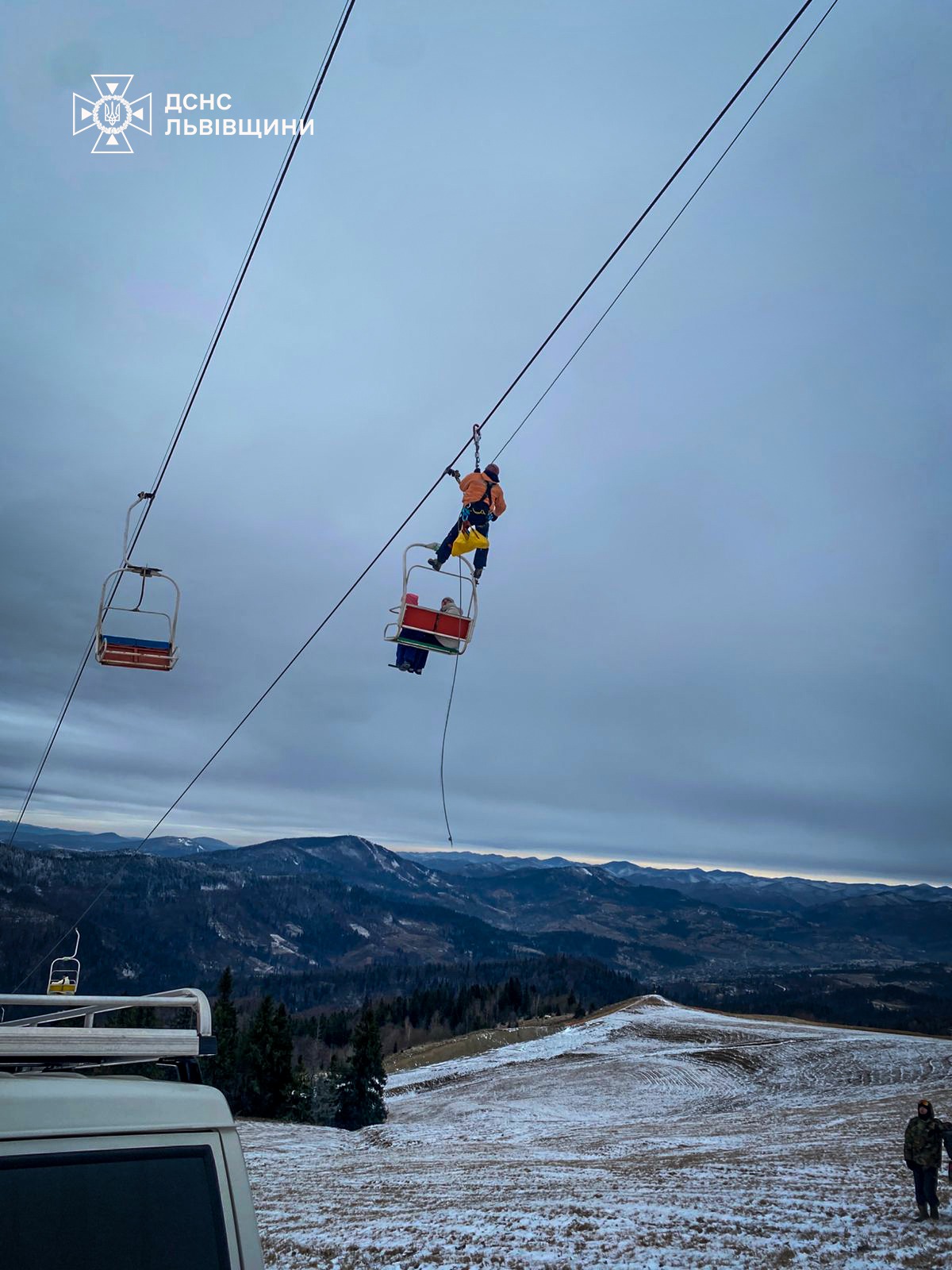 Львівщина: гірські рятувальники завершили роботи на горі Захар Беркут, де зупинився крісельний підйомник.