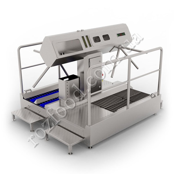 Використовуються спеціальні щіткові або прохідні установки для миття та дезінфекції підошви взуття.