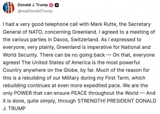 За словами Трампа, телефонна розмова з Рютте була "дуже хорошою": "Я погодився на зустріч різних сторін у Давосі".