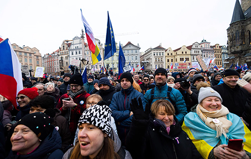 У Празі прихильники президента заповнили Староміську і Вацлавську площі, а поліція перекрила низку вулиць у цьому районі. Багато протестувальників розмахували прапорами ЄС і Чехії та несли плакати з написами "Ми підтримуємо президента". Деякі також публічно підтримали Україну і висловили незгоду з політикою коаліційного уряду прем'єра Андрея Бабіша.