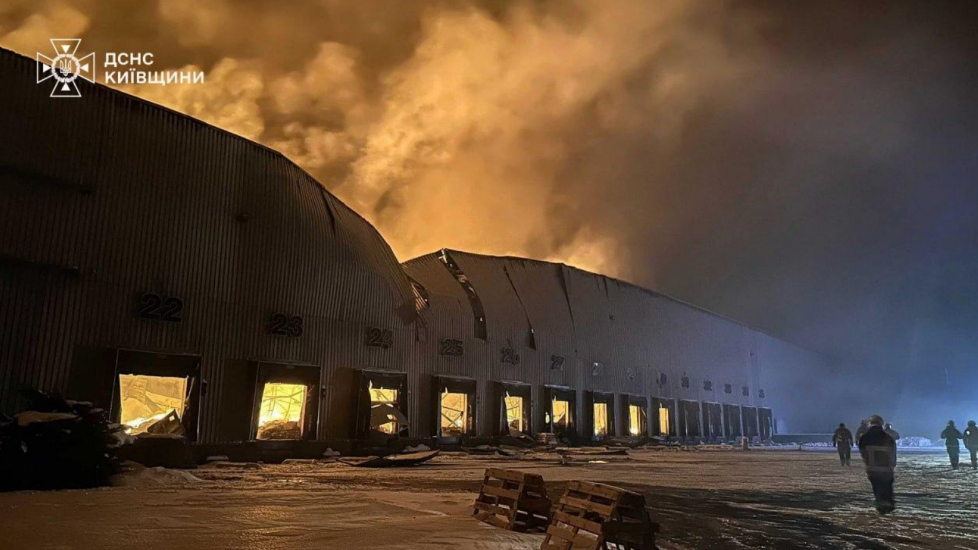 Російські війська в ніч на 7 лютого атакували дронами місто Яготин у Київській області. Спалахнула пожежа в складському приміщенні.