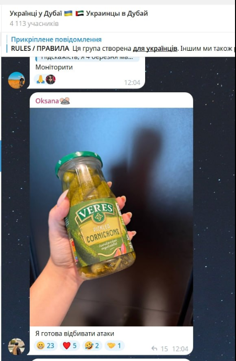 Таким чином вибухи пролунали й в Дубаї, де наразі перебуває чимало українців. Однак їхня реакція вже дивує мережу. Адже дехто задавав практичні питання на кшталт: чи закрили повітряний простір, чи треба збирати тривожну валізу. Були й ті, хто жартома згадували початок повномасштабної війни в Україні, коли у містах формували ТРО, громадяни власноруч тримали блокпости проти росіян. Дехто згадав мем про збивання дронів банками з консервацією.