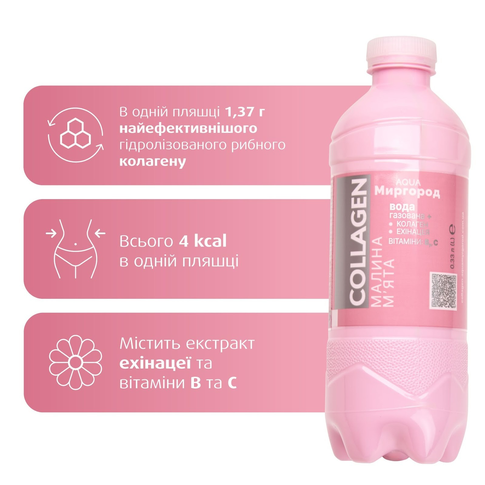 Новинка базується на поєднанні чистої миргородської води й високоякісного морського колагену, який має добру біодоступність. Завдяки цьому організм отримує природну підтримку свого білкового балансу у зручному щоденному форматі.