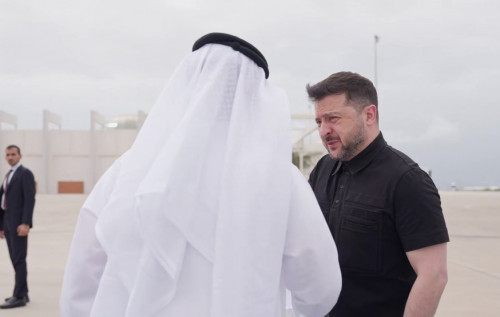 Сьогодні президент перебуває в Об'єднаних Арабських Еміратах, де зустрівся з президентом Мухаммадом бін Заїдом Аль Нагаяном та українськими експертами, які допомагають у захисті від атак дронів. Напередодні, 27 березня, Зеленський відвідав Саудівську Аравію.
