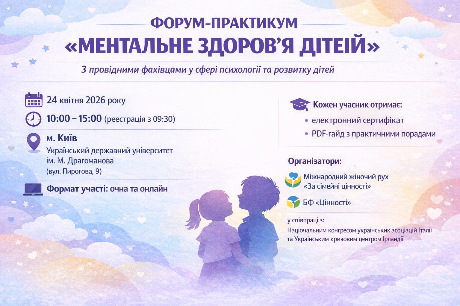Міжнародний жіночий рух "За сімейні цінності" запрошує на форум - практикум з провідними фахівцями в темі «Ментальне здоровʼя дітей», інформує UAINFO.org.