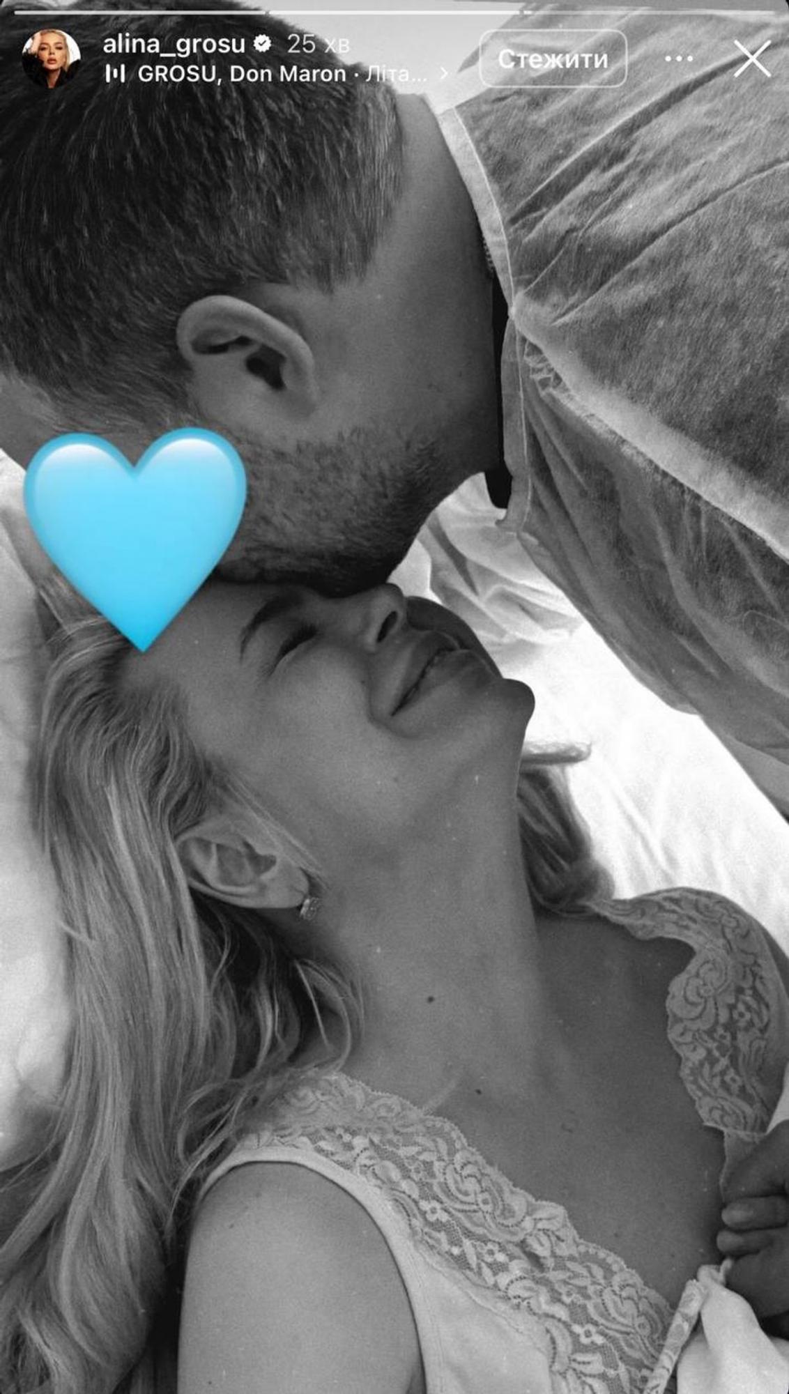 Артистка наразі не показує обличчя сина, але поділилася кількома фото, зробленими після пологів, в Інстаграмі. На одній зі світлин можна побачити чоловіка Гросу, якого вона теж приховує.
