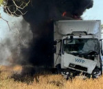 Ударні безпілотники атакували нафтобазу у селищі Матвєєв Курган Ростовської області РФ. На опублікованих відео видно густий дим від займання та проліт...